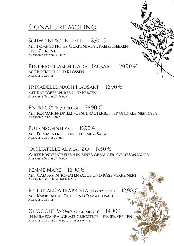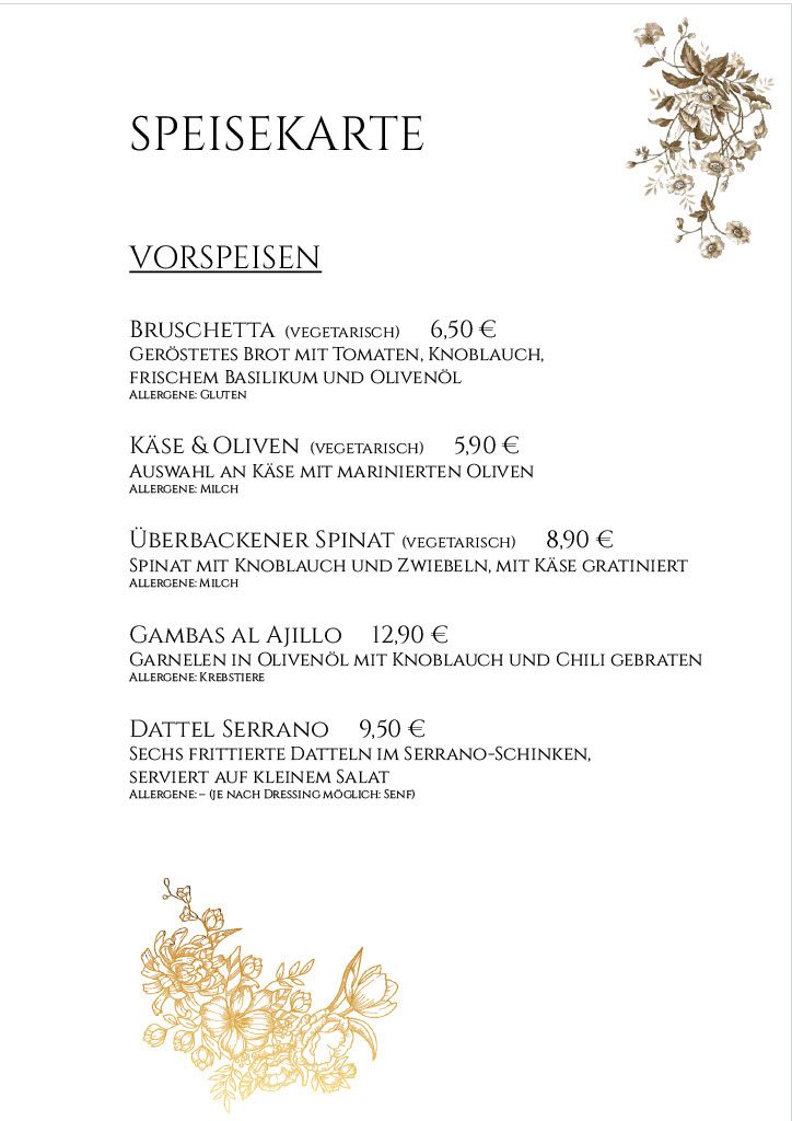 Speise- & Getränkekarte